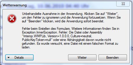 Leider muß ich auch Berichten das der Fehler noch da ist denn Heute Morgen hatten wir Unwetterwarnung !!! Danke TheWatcher2k3 ich konnte mir auch nicht so recht Vorstellen das es an den Media Player liegt da ich von Anfang an (Install Win7 64Bit) schon den VLC Player als Standard benutze. Die Vorgänger Version lief ja ohne dieses Problem !!! :-)