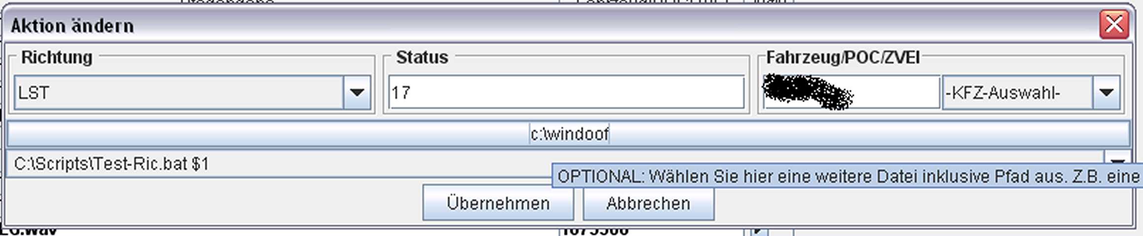 Ich habe das ganze soweit eingerichtet. Der externe Prozess wird auch ausgeführt, jedoch kein Text übergeben. Die Häkchen bei der Parameterübergabe habe ich gesetzt.