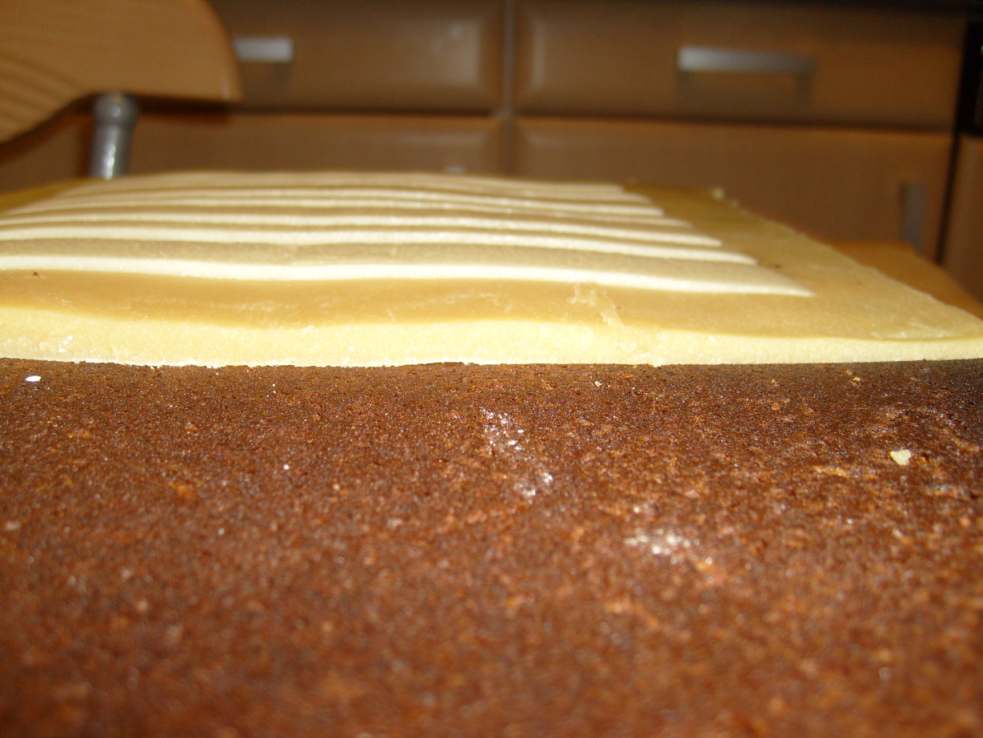 Für den LSP habe ich einfach Streifen ausgeschnitten und dann mit dem Nudelholz an die Rundung angepasst.