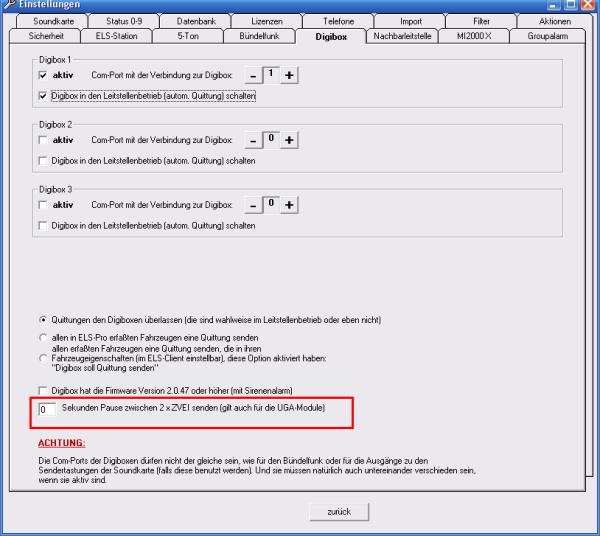 Hallo wir haben in den Servereinstellungen das Problem wenn man z.B. 1 sec. Pause zwischen 2 mal ZVEI senden anklickt es nach einem neustart des Servers jedes mal erneut eingeben muss.