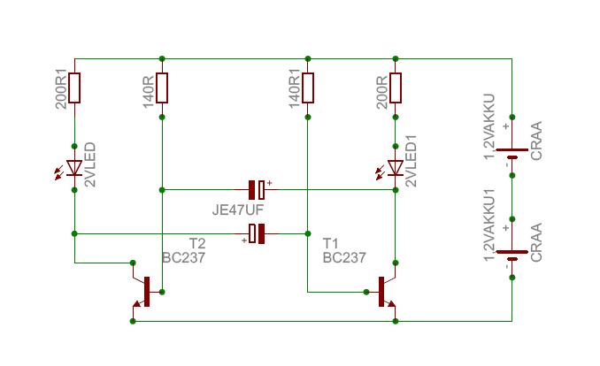 Der Schaltplan hat jetzt nur 2 LED´s, werden aber evtl 4 draus, die ich dann zu den andren 2 parallel schalte. Strom verdoppelt sich dann, des weis ich.