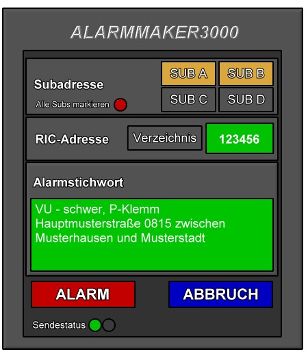 Ich überarbeite den Pager nochmal und erstelle ein Alarmpult auf der mal dann die 4 Radiobuttons "A B C D" und ein Feld "Text", und nen Button "Alarm" .. das wäre wohl das minimalste ..hat...