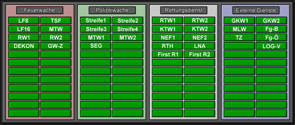 Die Fahrzeugübersicht, welche sich später als Pop Up von der Leitstelle aus öffnen lassen kann.