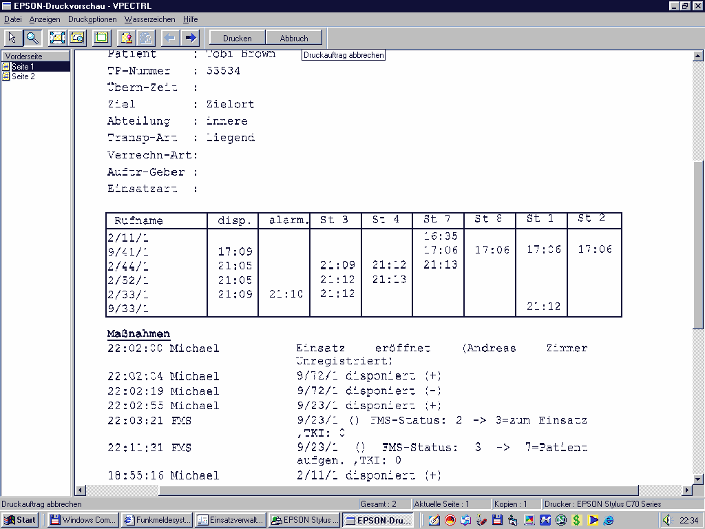 Fzge, die ab jetzt disponiert/alarmiert und dann eingesetzt wurden, werden in Tabellenform ausgedruck (siehe Bild).