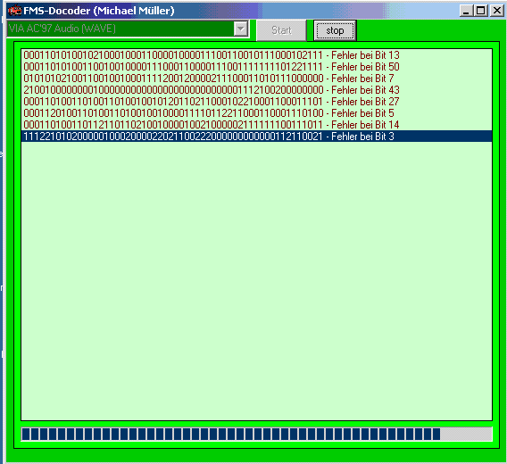 bei mir wertet der Decoder normalen FMS-Status sehr zügig aus trotz teilweise mieser Signalqualität auf unserem Landkreiskanal. Nur bei betätigen der Sprechtaste produziert er Fehler an verschiedenen Bit-Stellen.