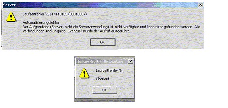 Das ist aber keine gesicherte Erkenntnis. Der Laufzeitfehler 6 ist ntern durch eine falsche Deklaration einer Zahlenvariablen verursacht, die nur bis 32.000 reicht.