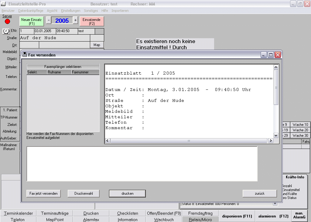 " Achtung (8)Bitte erst mit F1 auf der Hauptseite einen Einsatz anlegen!"