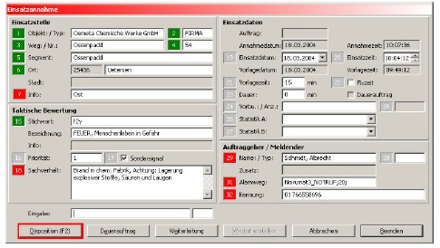 Ich finde auch die Maske von Wesser am übersichtlichsten. Man darf auch nicht vergessen, dass das Programm für alle HiOrgs + Pol gebaut sein soll. Was jedoch eindeutig fehlt sind die Bereiche "Segment bzw. Kreuzung".