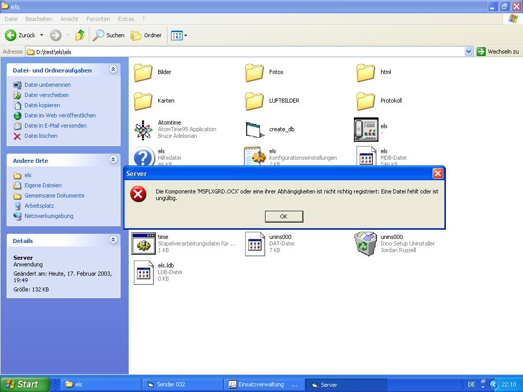 Desweiteren funktioniert mein ELS-Server nicht mehr. Bei starten des Servers erscheint "die Komponente MSFLXGRD.OCX oder eine ihrer Abhängigkeiten ist nicht richtig registriert. Eine Datei fehlt oder ist ungültig"!