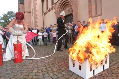 Dass man das vorher mit dem Ehepaar (beiden?!) abklärt, hielt ich eigentlich für selbstverständlich. Persönlich finde ich die Schlauchspirale und das Spalier okay, von mir aus dürften die Jungs auch gerne in Uniform kommen.