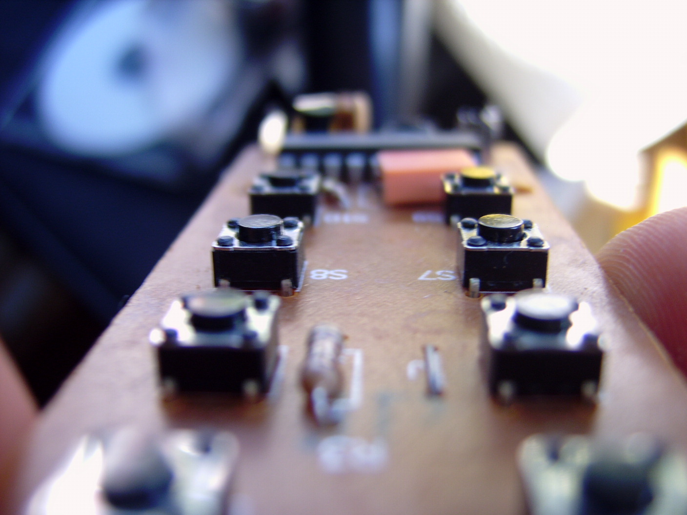 Meist sind es die Diagonal liegenden Pins, d.h. der Druckknopf ist auf der Platine per 4 Pins angebracht, sieht aus wie die 4 auf einem Würfel.