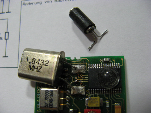 Merkwürdigerweise findet sich hier kein SMD-Quarz, wie z.B. auf