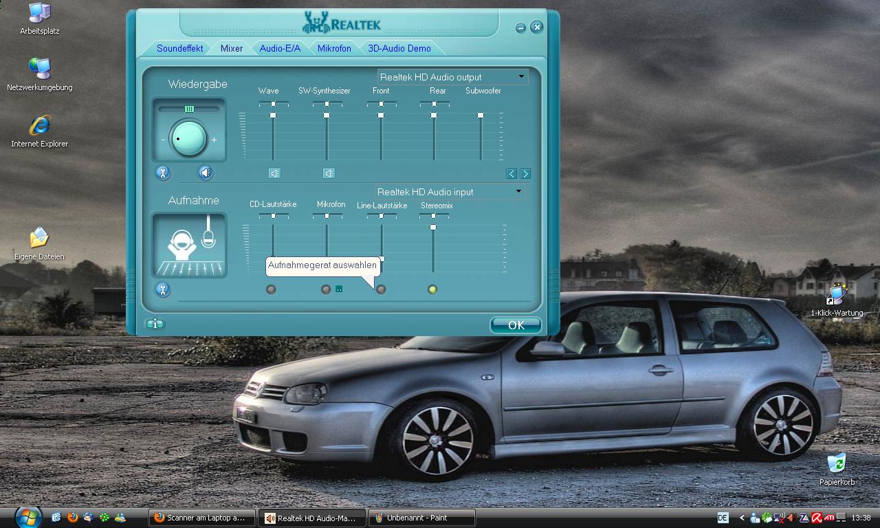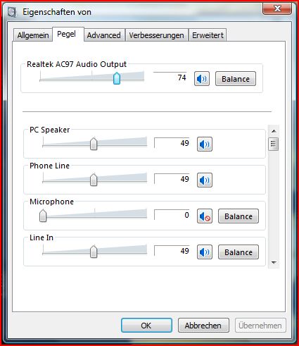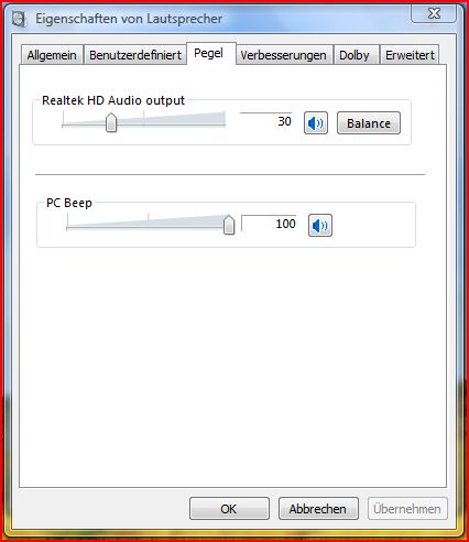 Also ich habe auch eine Realtek HD Audio drin und bei mir funktioniert es wunderbar *g* Ich hab zwar XP, aber genauer Hinschauen und ein bisschen "rumspielen" hilft manchmal