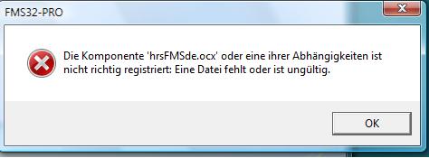 Kopier die besagte ocx Datei mal ins FMS32 Verzeichnis hat bei mir unter Windows 7 auch geholfen.