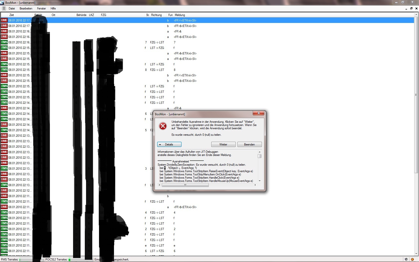 Da waren wohl 2 Instanzen von BosMon aktiv, dann kann die 2. nicht mehr in das Logfile schreiben, bitte nur 1 Instanz starten :)