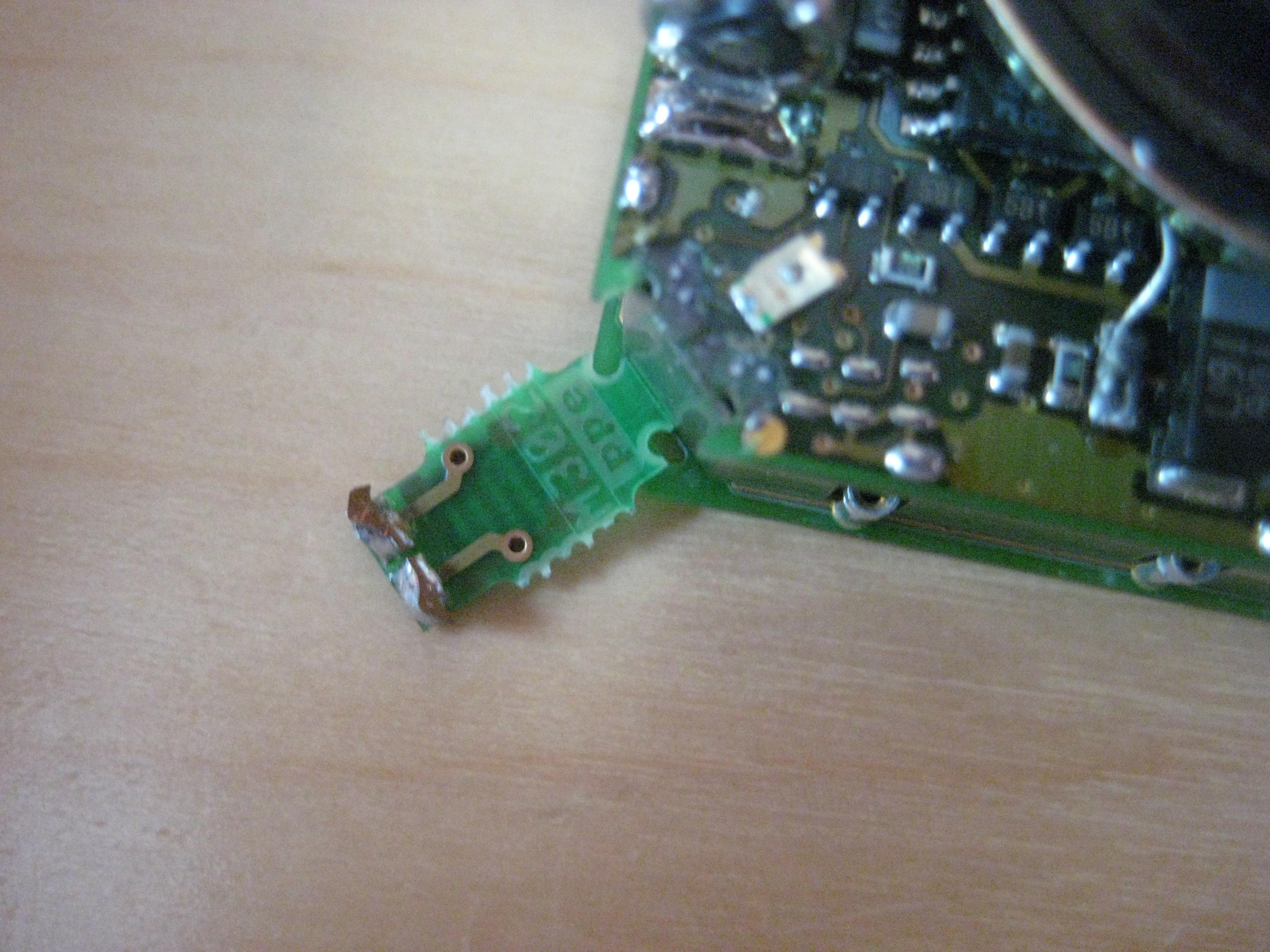 Mmh, das sieht nach rausgerissenen Lötpads aus - wenn du nicht gerade Erfahrung damit hast würd ich das Einschicken, zumal die Lötpads auch die Stabilität sichern. Also nur mit Drähten ist das wenig erfolgversprechend.