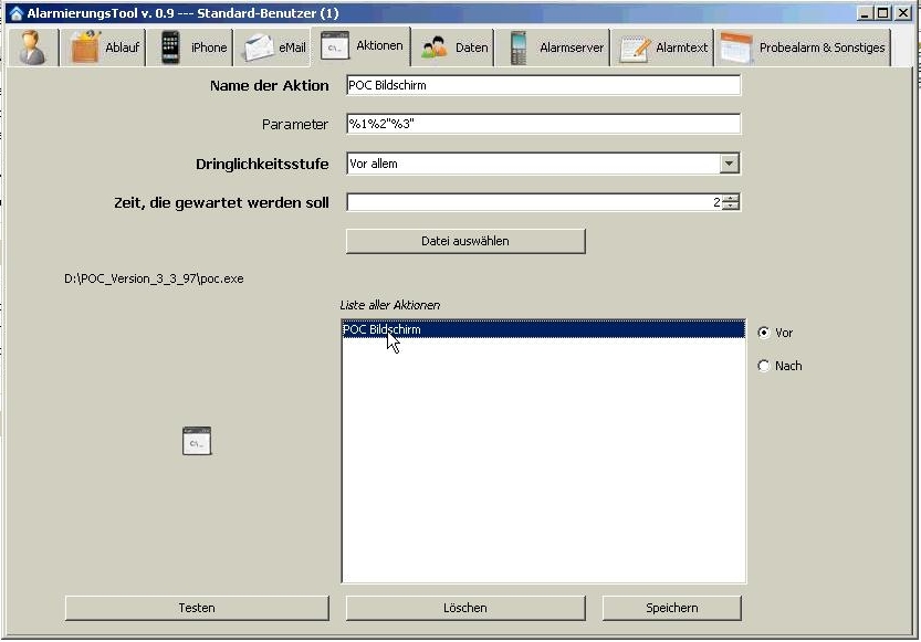 Nun habe ich unter Aktion die Parameter wie sie hier schon einmal im Thread besprochen worden sind eingetragen: %1 %2"%3"