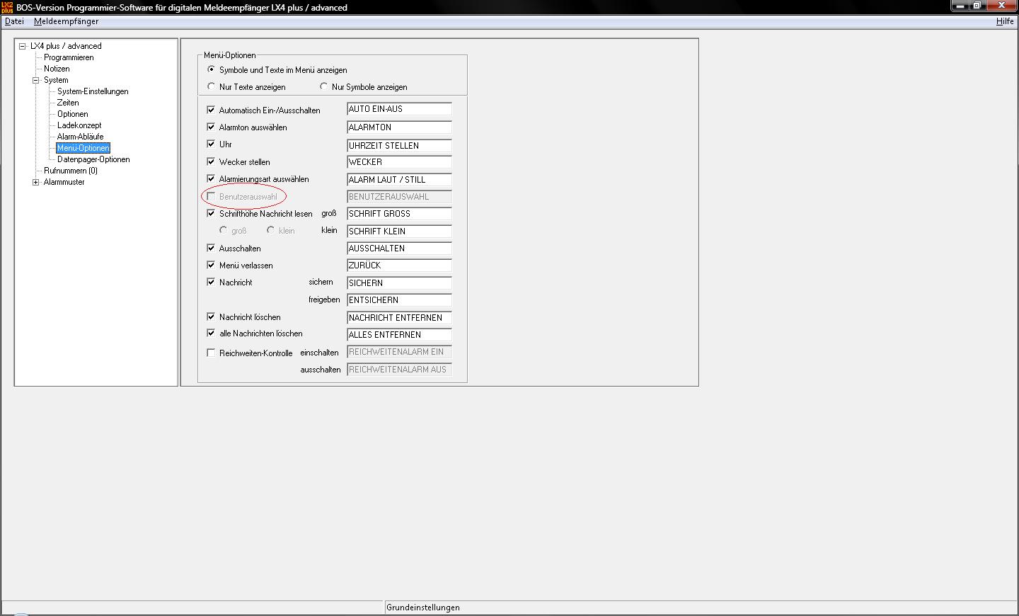 Leider kann ich in der Software die Benutzersteuerung in den Menü-Optionen nicht selektieren (siehe Bild).