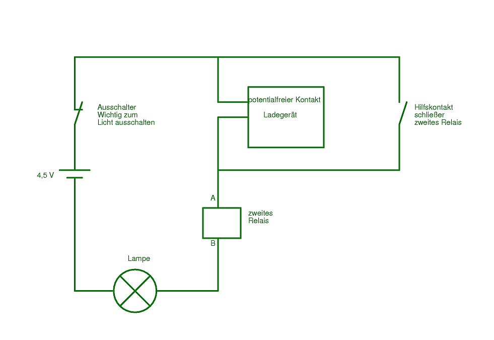 Das zweite Relais ist notwendig. Damit überbrückst du den Kontakt des Ladegerätes.