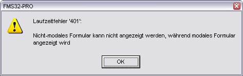 kann irgendwer mit dem Laufzeitfehler 401 was anfangen, kommt immer wenn ich bei FMS32PRO etwas speichern möchte.