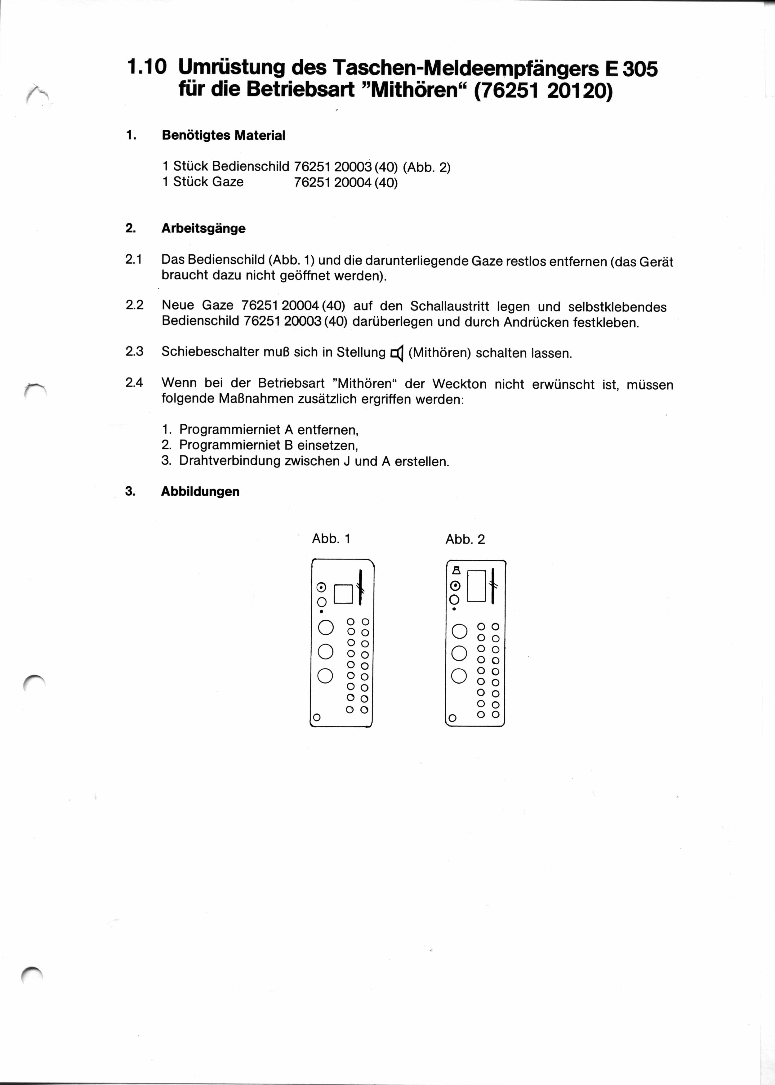 Der Melder wurde bis September 1980 ohne Mithören-Kopf ausgeliefert. Konnte aber umgerüstet werden.