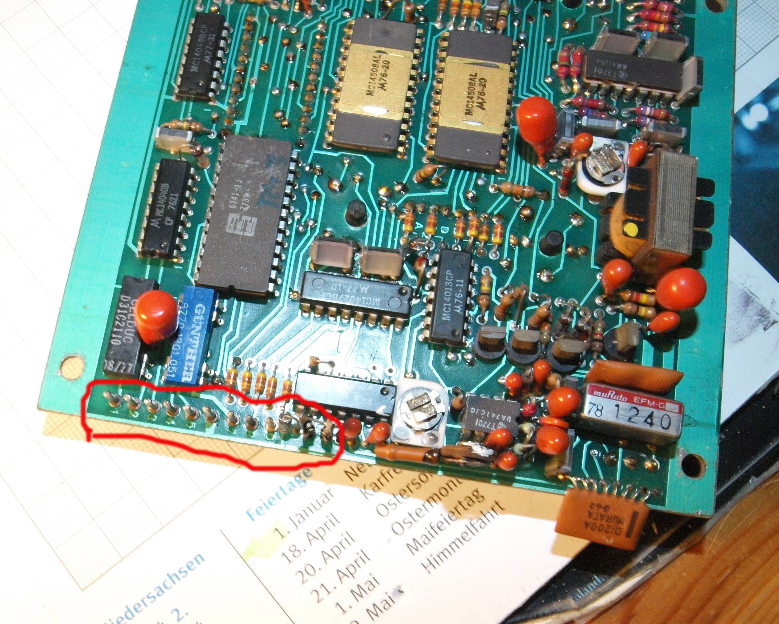 Zur besseren Abstimmung habe ich mal 3 Bilder mit angehängt. Einma von oben, von hinten und die Anschlusspins auf der Leiterplatte. Die Kabel vom Fug7b zur Leiterplatte waren leider abgezogen.