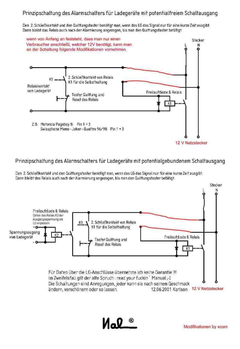 der grundsätzliche Unterschied zwischen Swissphone und Motorola ist das die Ladegeräte der SK Serie (also ab Q96 auch die digitalen) einen Schaltausgang bereitstellen. Schaltausgang heißt potentialfreier Kontakt quasi ein Schalter / Taster. Im inneren der Ladegeräte kann man ein Brücke setzen oder trennen. Damit kann man entscheiden ob der Kontakt nur für einige Sekunden schließen soll (quasi Taster, optimal für Torsteuerungen) oder dauernd schließen soll bis der Melder aus dem Lader entnommen wird oder im Lader zuückgesetzt wird.