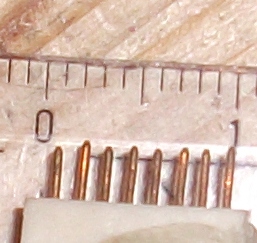 Da die Buchenleiste sehr klein ist, müssen die Stifte der Leiste die ich suche einen Abstand von ca. 1,1mm haben. Alle 8 Löcher der Buchsenleiste haben einen Gesamtabstand von 0,9cm.
