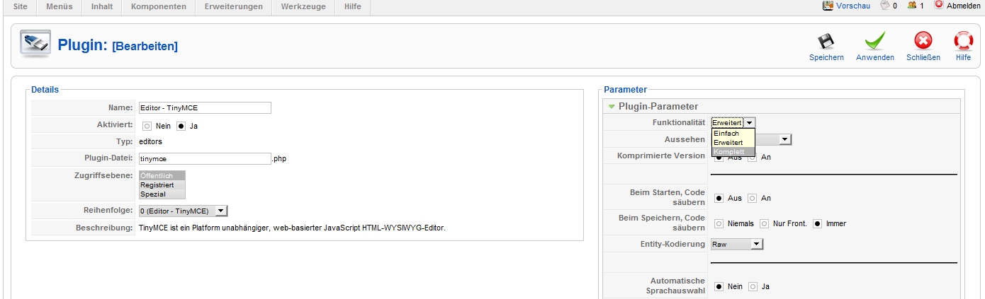 Einfach im Plugin vom TinyMCE auf Komplett ändern und schon kannst du auch Tabellen erstellen.