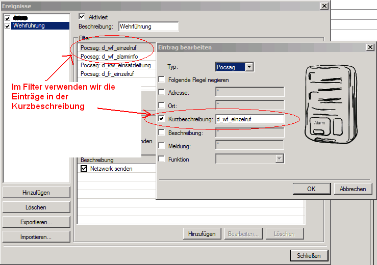 Wir wollten es für den Nutzer so einfach wie möglich machen. Es muss also keine Benutzer-Zahl mehr angegeben werden, sondern es wird anhand der RIC alarmiert (also nicht den Namen, sondern die RIC).