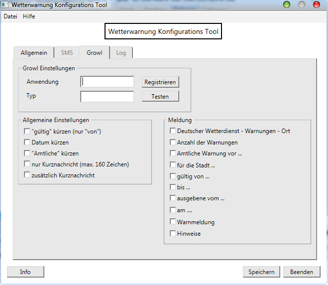 - unter "Anwendung" z.B. "DWD" eintragen (alternativ auch schon eine vorhandene Anwendung aus Growl)