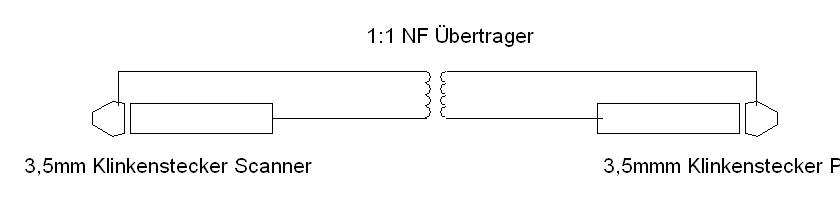Es geht drum, dass der Scanner ja eigentlich einen Kopfhörer erwartet und keine Soundkarte und der Computer erwartet keinen Kopfhörerausgang. Mit dem Übertrager sollten beide "zufrieden" sein.