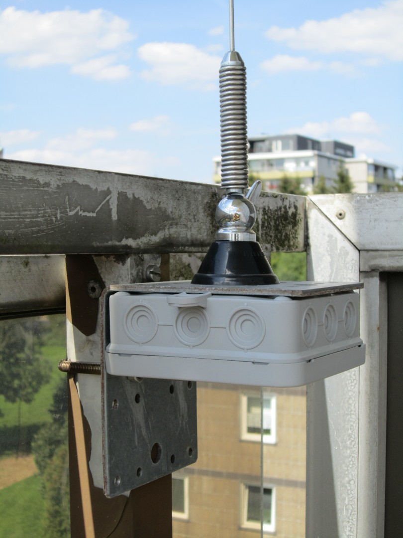Jetzt ist mir aber eine 4-m-Kathrein-Fahrzeugantenne (nicht magnetisch) in die Hände gefallen.