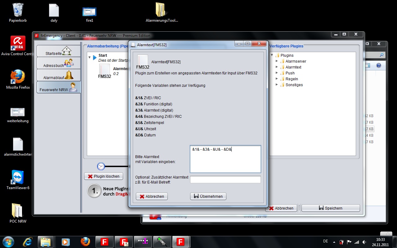 Wenn das nicht klappt, dann trag mal im Plugin "Alarmtext[FMS32]" folgendes ein: