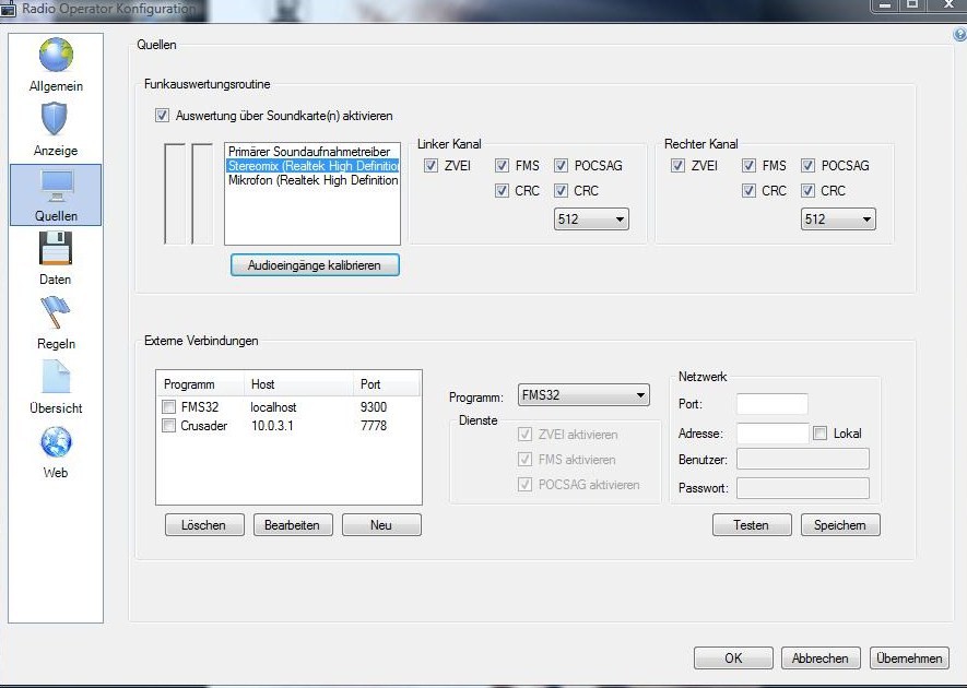 Es handelt sich um Albrecht AE 69-2H und ein Kabel mit zwei 3,5mm Klinken, die ich an die Lautsprecherbuchse des Scanners und an sämtliche Buchsen des PCs angeschlossen habe.