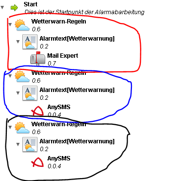 Dies habe ich alles über die Wetterwarnregeln fertig konfiguriert, habe mir dabei aber schon gedacht was evtl. passieren könnte: