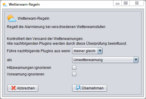 Ist es nicht möglich, dem Wetterregel Plugin noch (Alarm bis Wetterwarn Stufe XXX) Option hinzuzufügen?