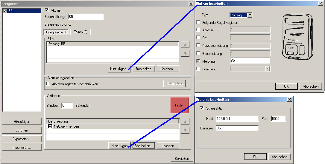 Ist es nun Möglich, dass man sagt, wird bsp. egal wo ein B5 alarmiert, wird eine SMS rausgeschickt?