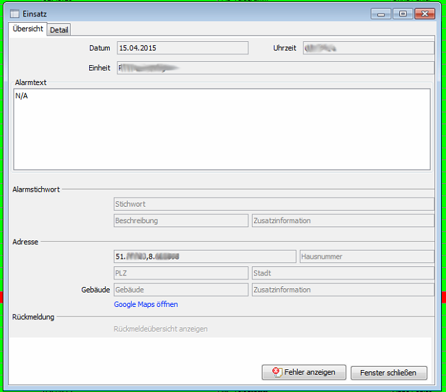 Der Einsatzort soll aus einer Alarmemail ausgelesen werden. Dazu wird eine Alarmemail in folgendem Format übermittelt: