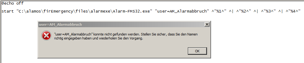 C:\...\Alarm-FMS32.exe ^"AM_Alarmabbruch^" ^| ^"%2^" ^| ^"%3^" ^| ^"%4^"