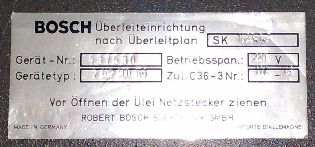 Ich habe hier noch eine alte Bosch Überleiteinrichtung liegen. Leider habe ich dazu keine Unterlagen.