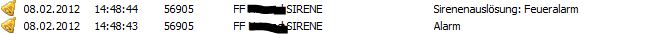 Wo kommt diese Meldung her? Sie wird bei mir in der Spalte "Meldung" angezeigt, wenn eine ZVEI-Alarmierung erfolgt die einen Sirenenton zur Folge hat..., hab diese Meldung selber nirgendwo eingegeben. Die Schleife wird somit auch zweimal erkannt und ausgewertet, obwohl ich die Doppelerkennung einer Schleife auf 3 Sekunden gesetzt habe...(siehe Zeiten auf dem Bild).