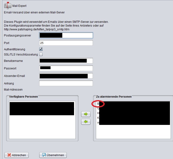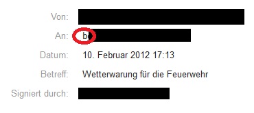 Ich lasse per Mail ca. 10 E-Mail adressen alarmieren, die Mails kommen auch alle bei den Mail-Adressen an, jedoch steht im " Gesendet An: aaa@bbb.de" immer egal bei wem die selbe E-Mail adresse und zwar immer die die als erste im Mail - Plugin ausgewählt ist (ich hoffe ihr wisst was ich meine.....) Im anhang hierzu mal ein Bild... wäre mir garnicht aufgefallen wurde von einem aus unserer Feuerwehr darauf hingewiesen!