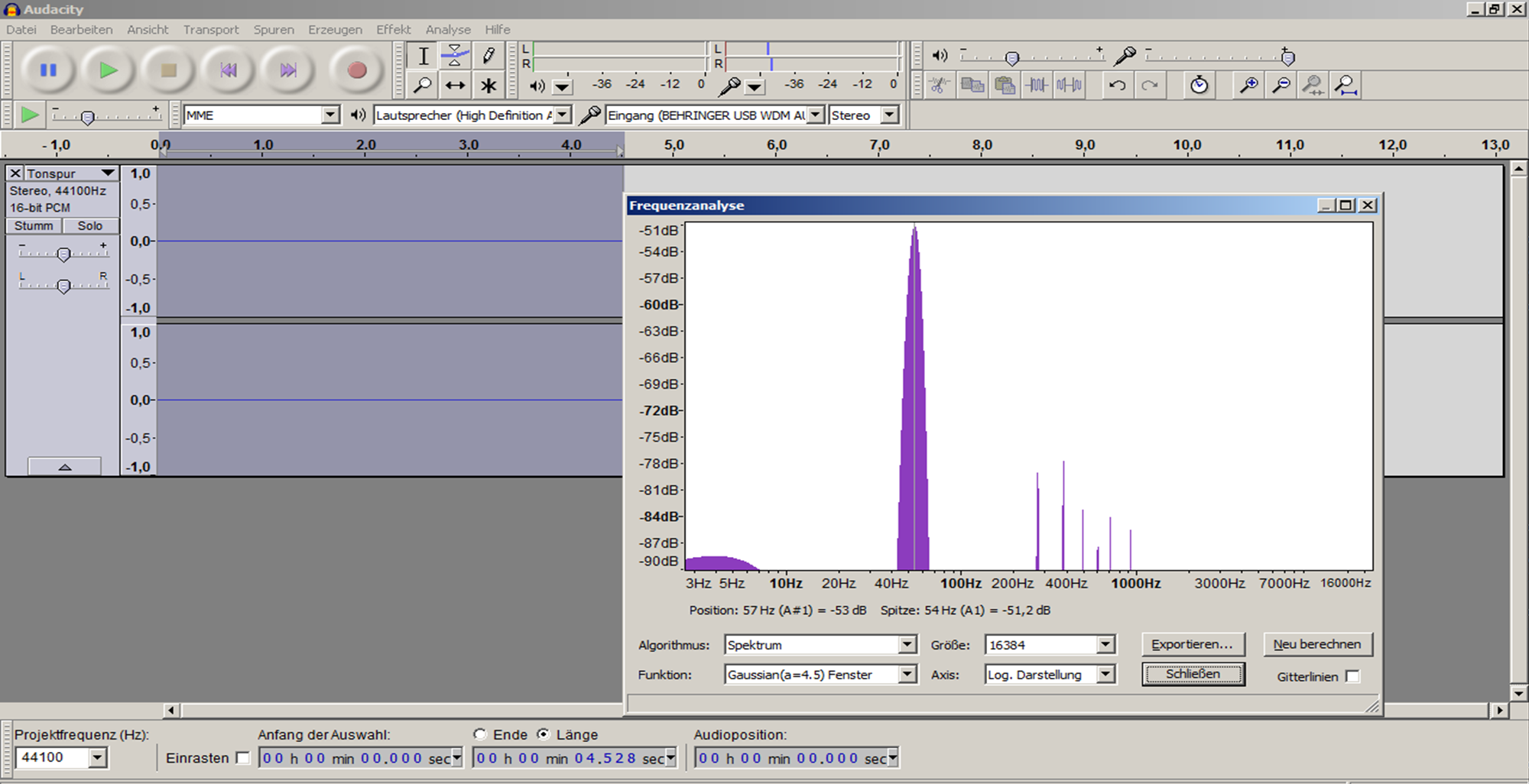- das Audiosignal mit einer Software aufzeichnen (z.B. Audacity)
