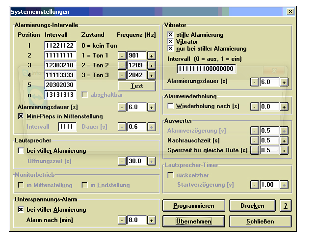Auslesen kann ich den Melder nur mit der alten DOS Software PGA88, ich kann alles Programmieren, Schleifen, Töne, Einstellungen, bis auf eins, und zwar Vollalarm auch in Mittelstellung, deswegen macht mir der Melder auch immer noch den Minipieps.