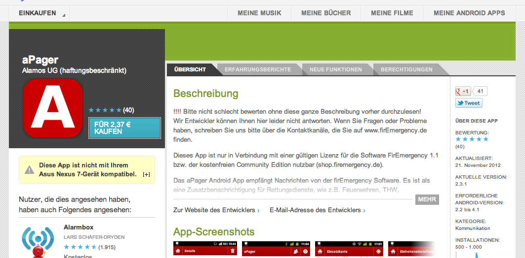 Bei der direkten Website von Google-Play wird die App mir als für mein Gerät nicht kompatibel angezeigt.
