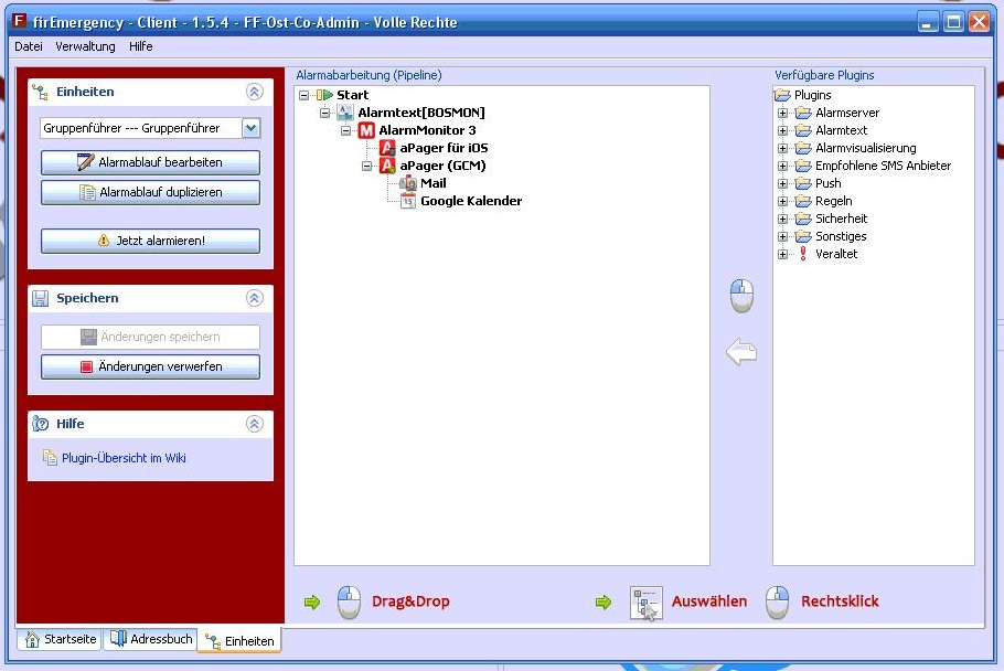 Da zum Beispiel nur die Gruppenführer den kompletten Alarmtext lesen dürfen, die Maschinisten nur die Anschrift und die Mannschaft nur das alarmierte Fahrzeug, habe ich diese drei Einheiten angelegt.