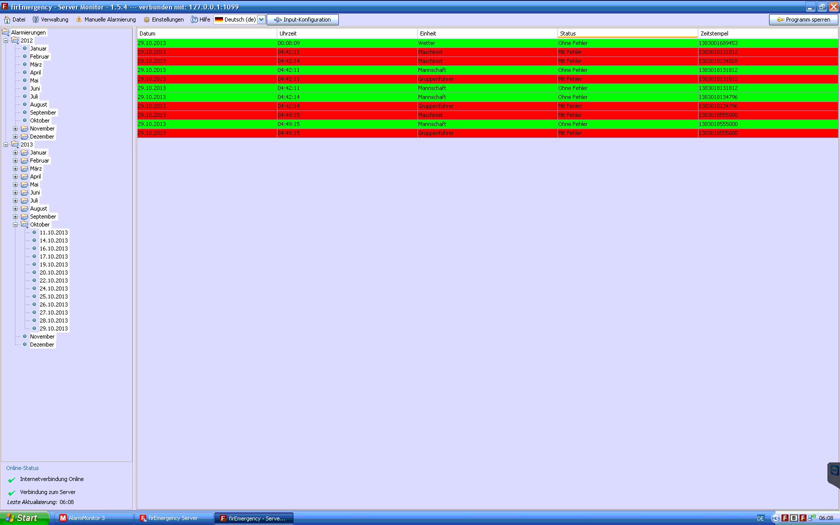 Wie gesagt, heute Nacht hat es am Monitor mit der Zusammenführung der Rückmeldungen aller Alarmierungen am Monitor nicht funktioniert.
