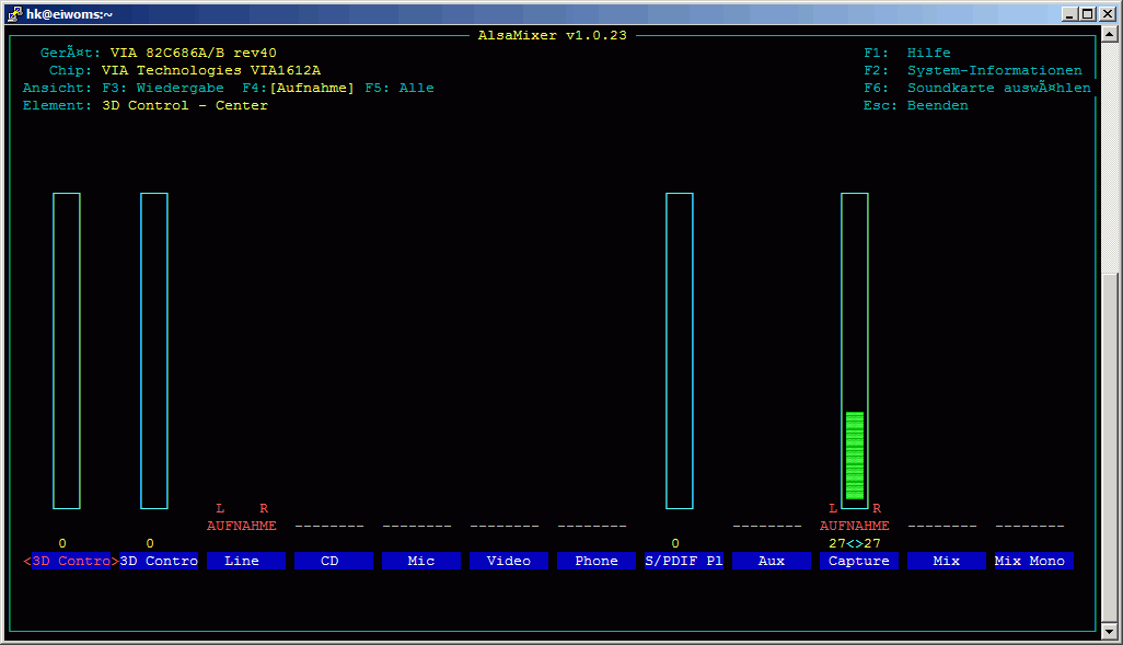 Ein Screenshot von meinem Alsamixer zeigt, wie es dann beim Regler "Capture" aussehen sollte.