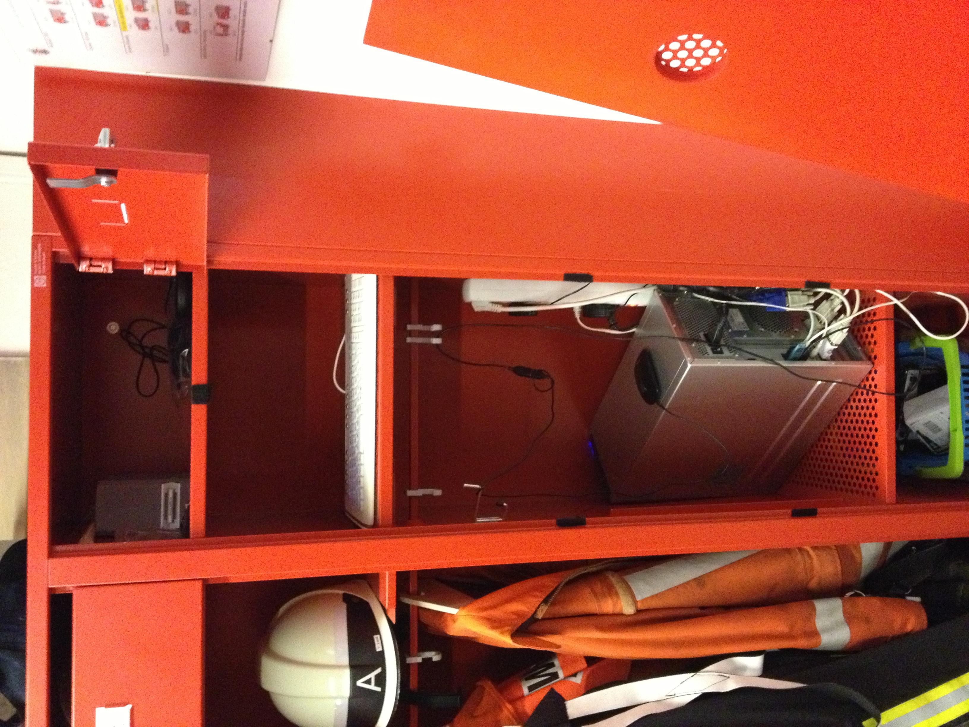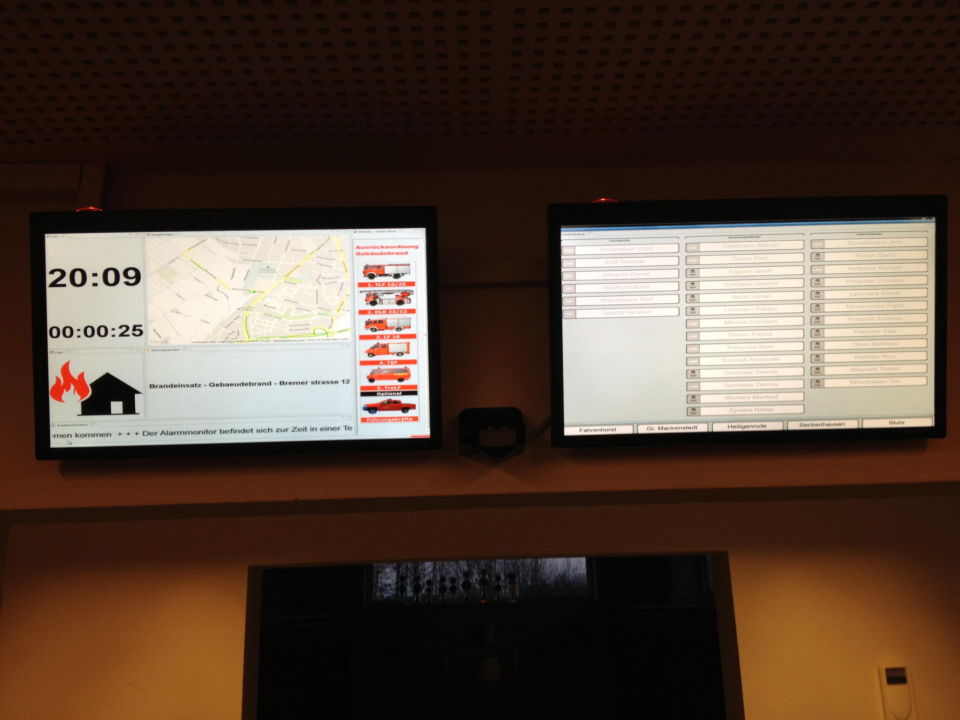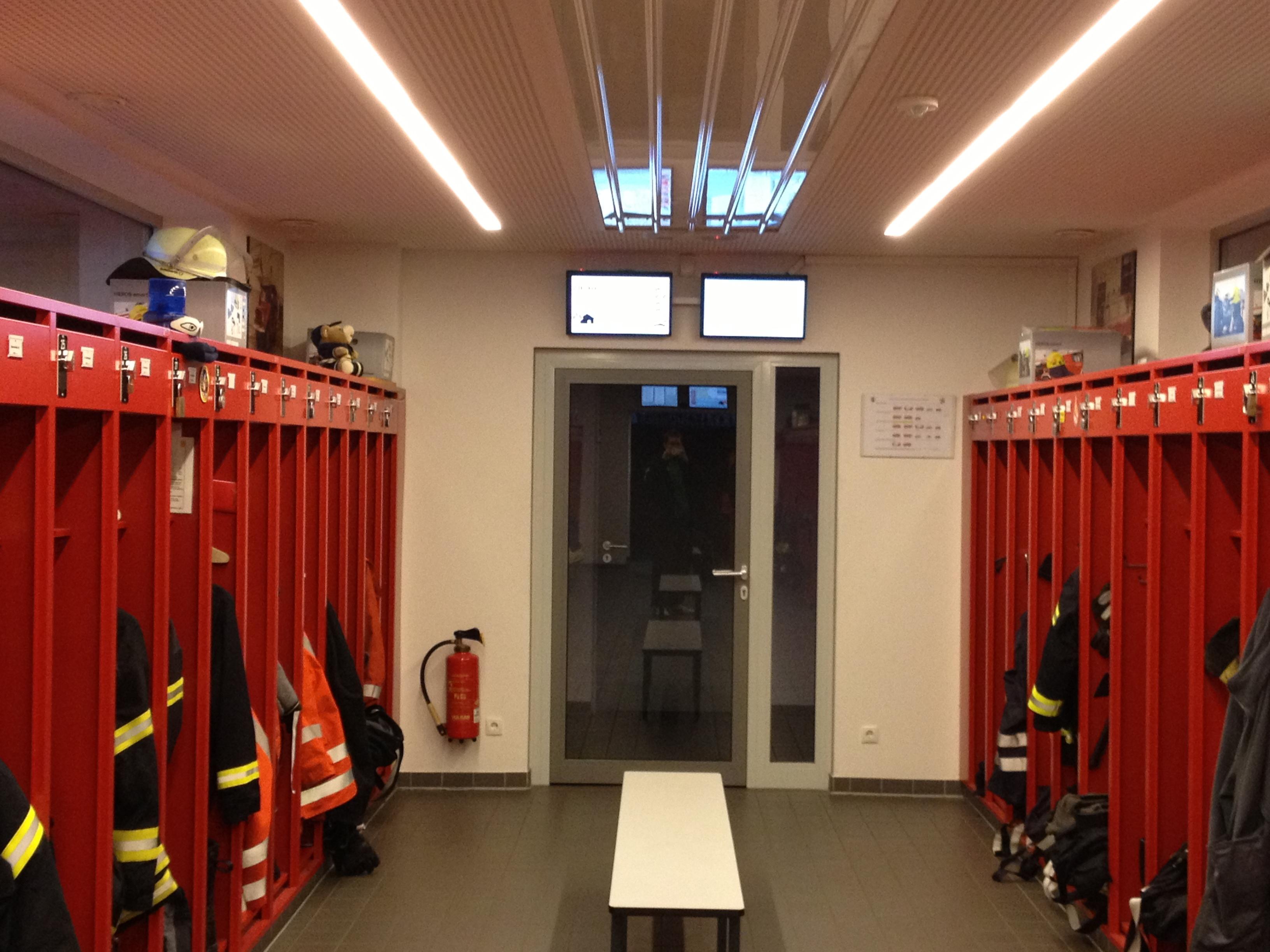 Ich kann von unserer Lösung mal ein Foto machen und hier hochladen, haben zwei Monitore an jedem Ausgang und zwischen den Monitoren hängt dann der kleine Bewegungsmelder, betritt jemand den Alarmgang mit den Spniten gehen die Monitore automatisch an :)